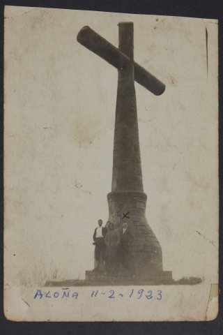 Argazki postalaren atzealdean ondorengoa idatzita dago: "Excursión verificada a la cruz de Aloña. El 11 de febrero de 1923. Recuerdo para que no te olvides de tu hermano. Miguel"