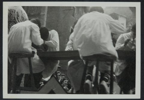 1966 urteko Euskal Jaieko antzezlan baten argazkia. Atzealdean ikusleak antzematen dira.