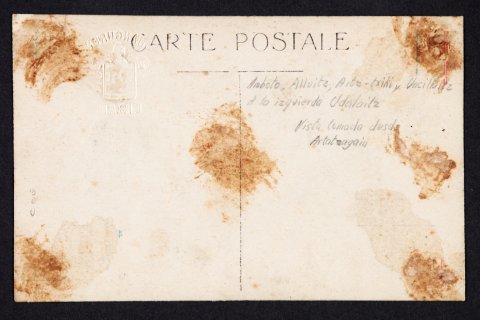 Bertan ageri da Klubera bidalitako postala. Artatzagainetik ateratako argazkia da. Bertan Anboto, Alluitz, Aitz-txiki, Unzillaitz eta Udalaitz ageri dira